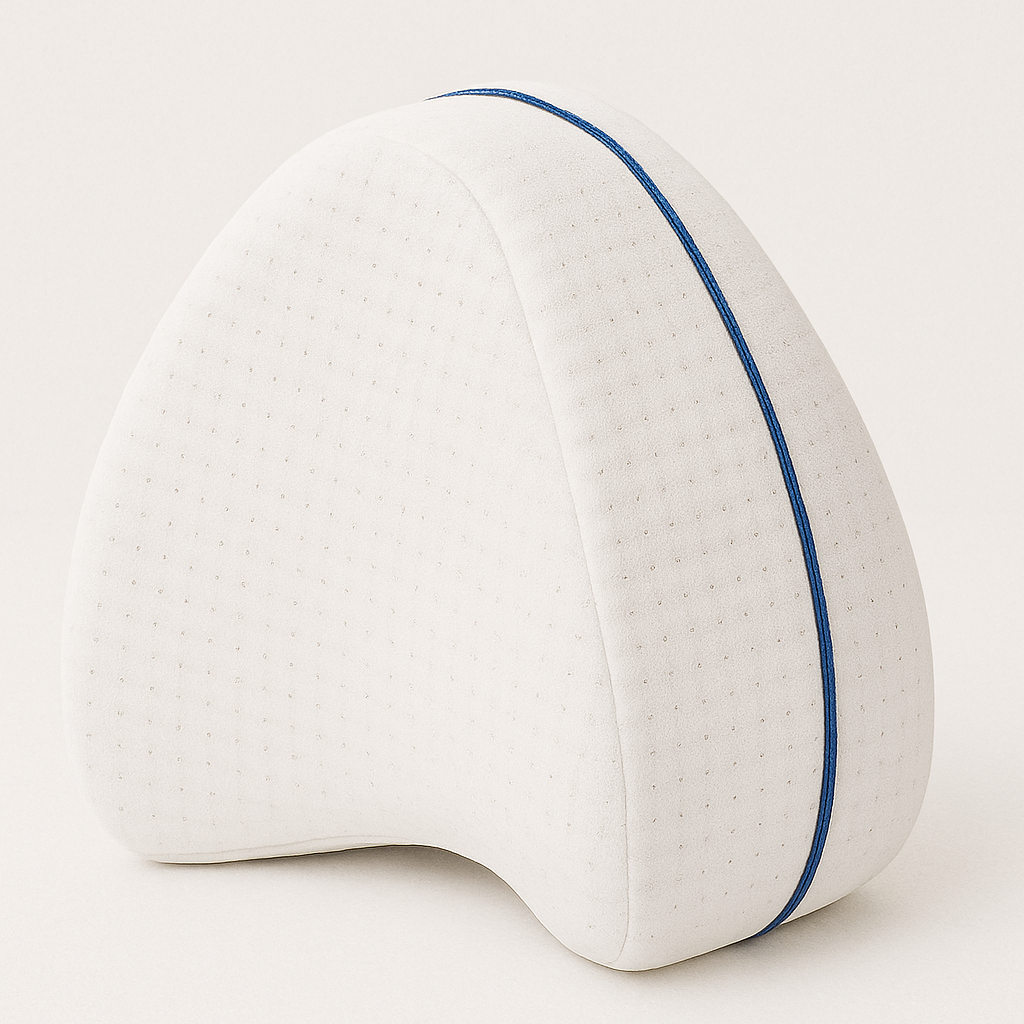 Su diseño curvo y anatómico mantiene la pierna superior alineada sin rotar la pelvis ni presionar las articulaciones, lo que la convierte en una opción ideal para personas con dolores musculares, postoperatorios o embarazadas que duermen de lado.